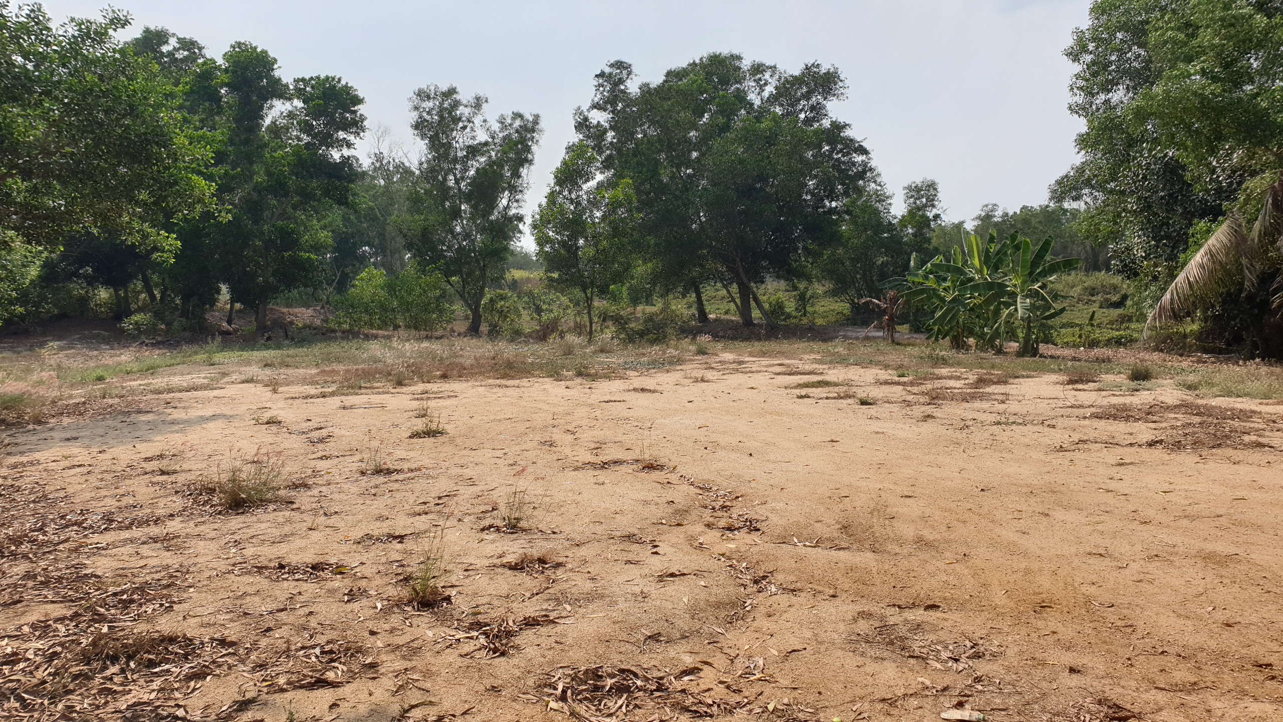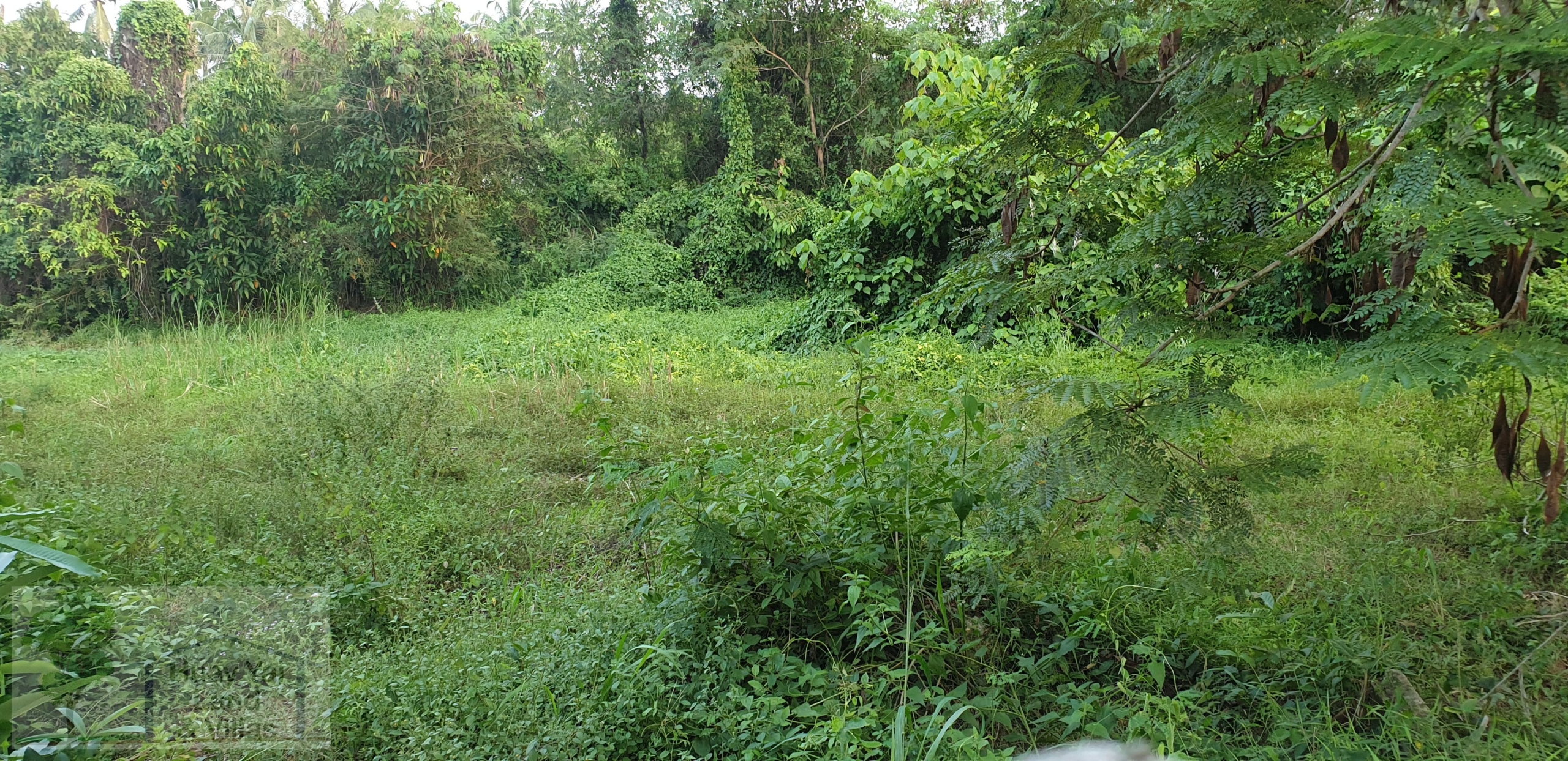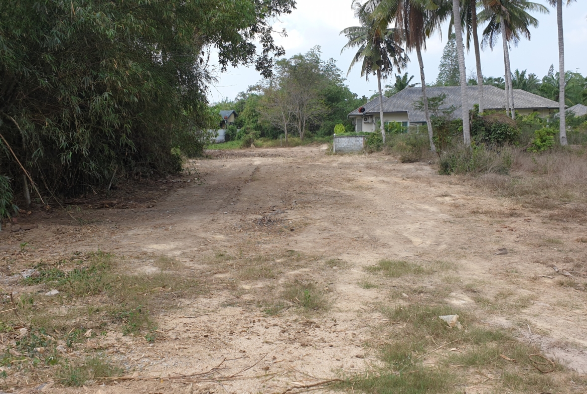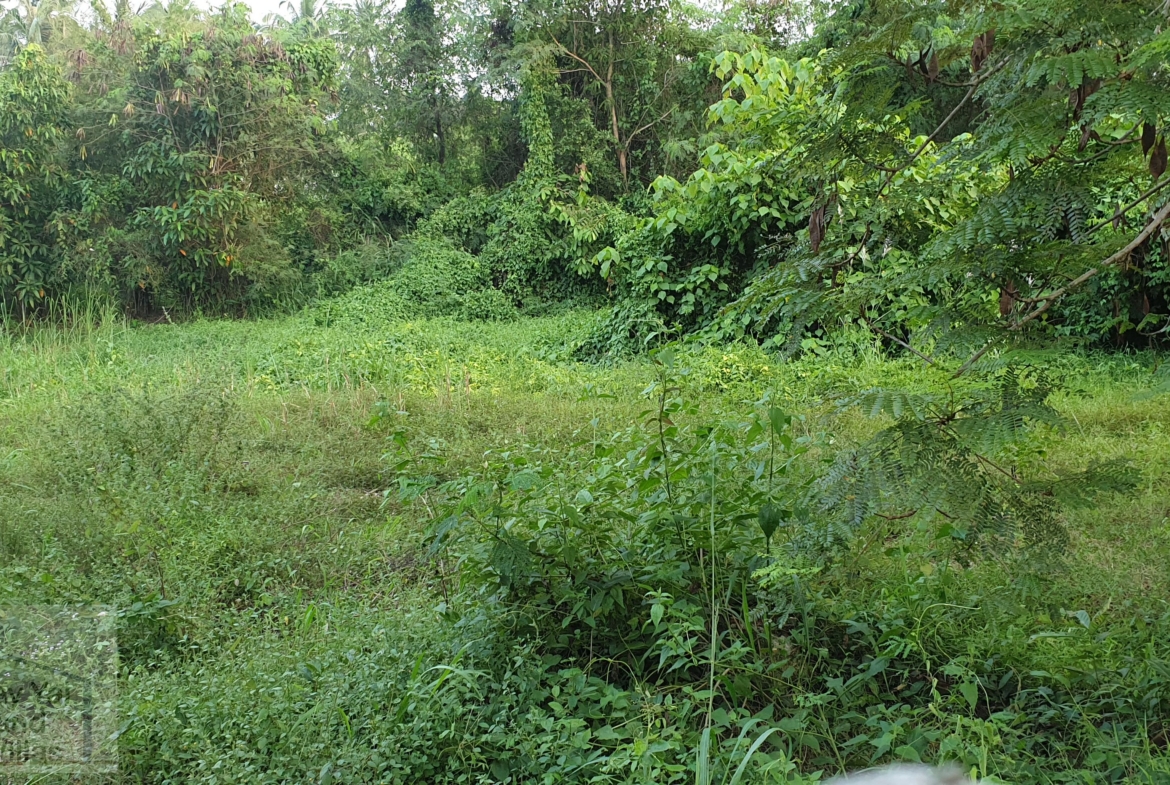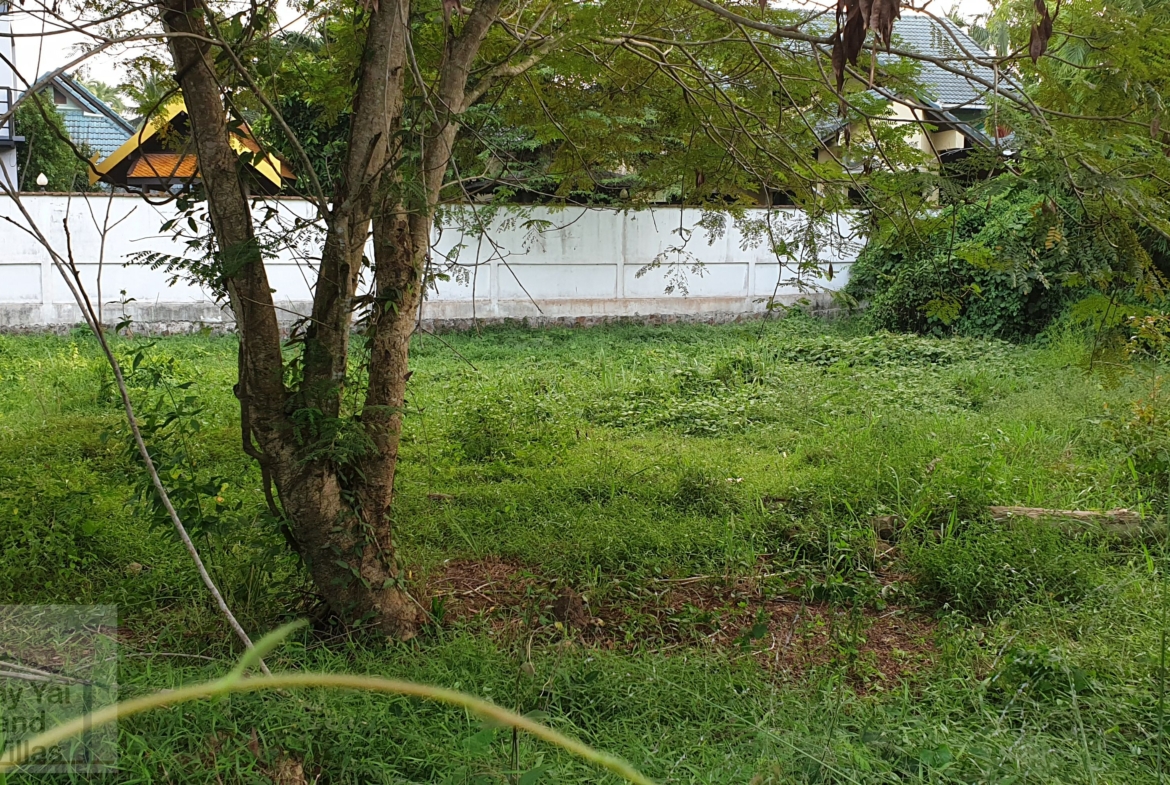 Low lying backland at end of small unmade up government soi. Up market farang neighbours and storage yard for earth moving machines adjoining. Long rectangular shape