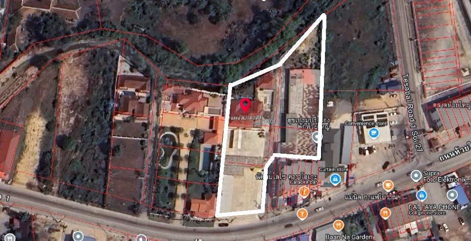 Main road fronting Land Plots, with existing 5Bedroom Pool Villa including detached annex, 239TW / 956m2 and currently with concrete hard standing and some warehousing. It would make an ideal villa development site. Set near Wat Huay Yai and Baan Na Garden Restaurant on the Huay Yai Main Road. We understand the land has a small government concrete soi to the side