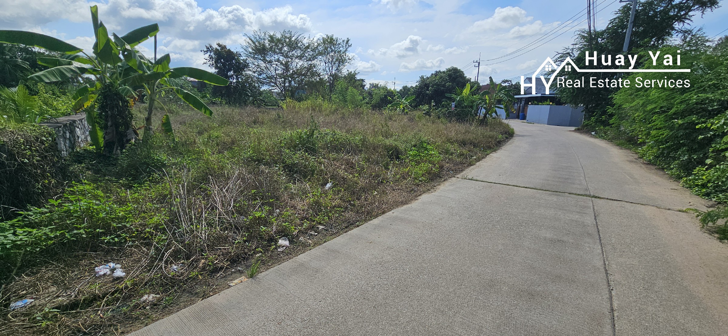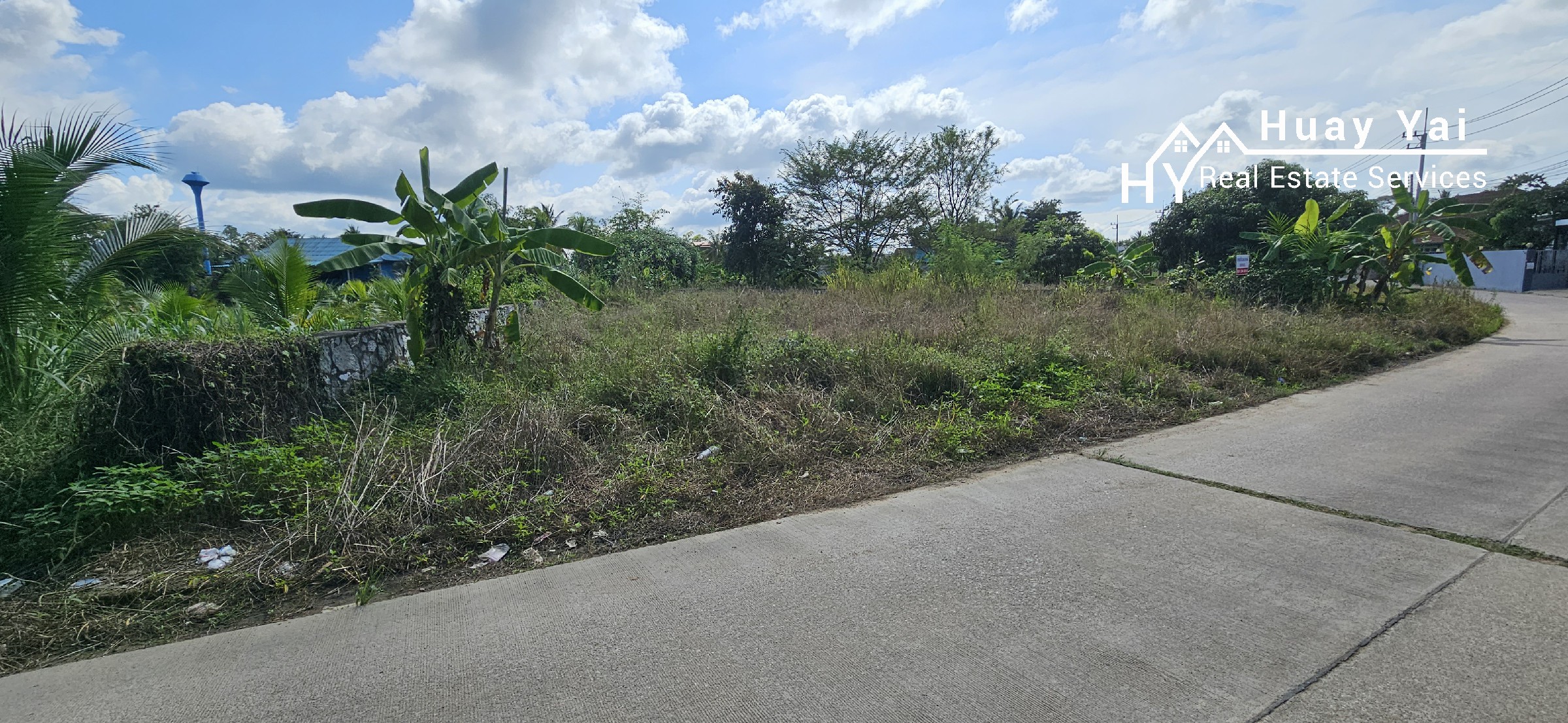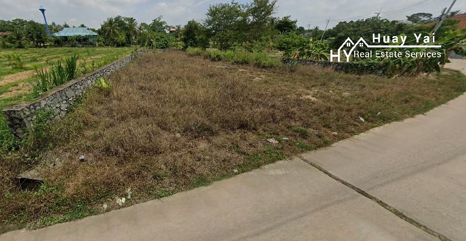 Small road fronting plot in the residential Huay Yai Chien. Three Phase and High Tension in asphalt soi. Foundations for walls in place. AGENTS NOTE: Adjoins #1631