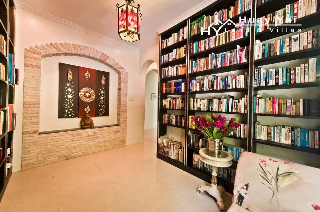 The house extends to over 715 square meters [7,800 ft] with, on the ground floor, a lovely living room, library, fully equipped European kitchen and dining room. There is also an entertainment lounge with bar, conservatory, and wine cellar/storage in the basement.
