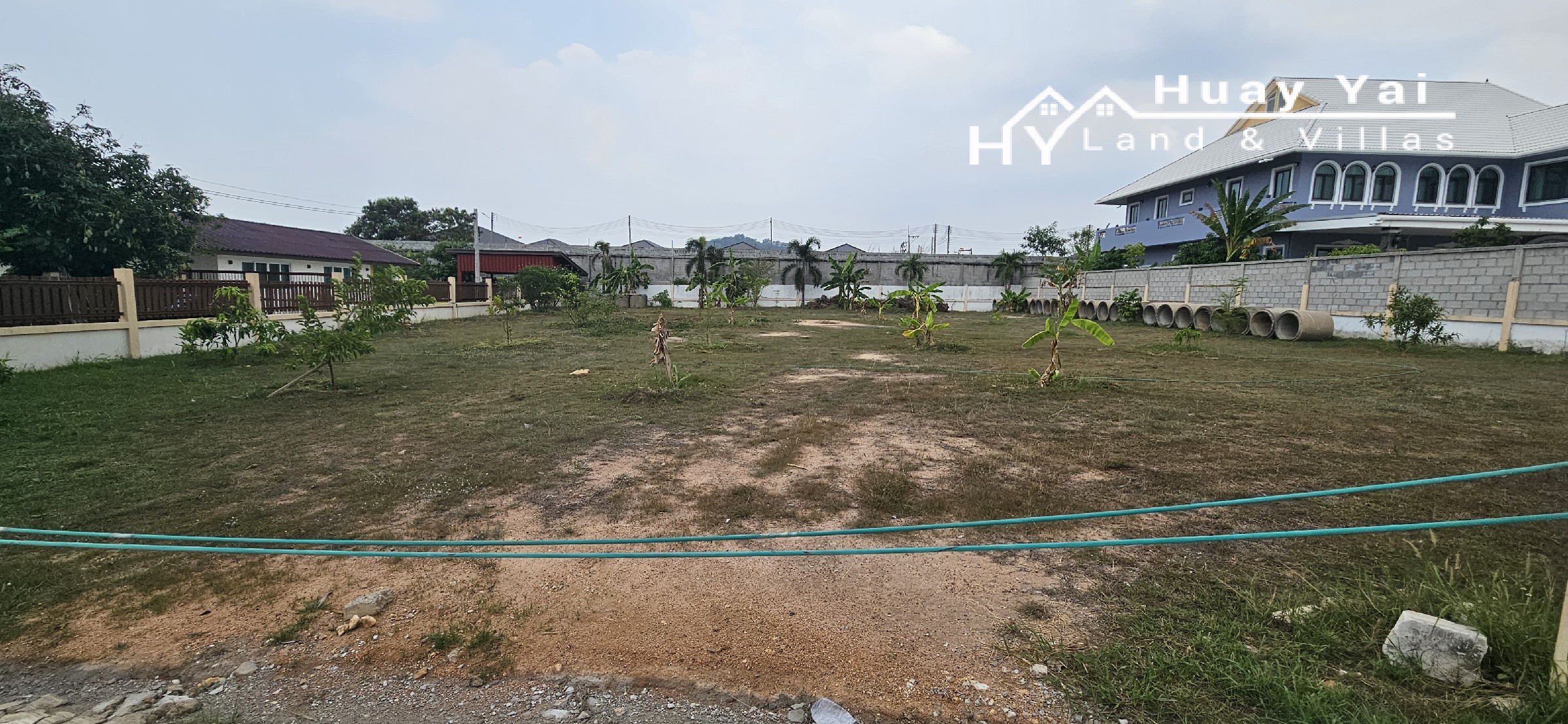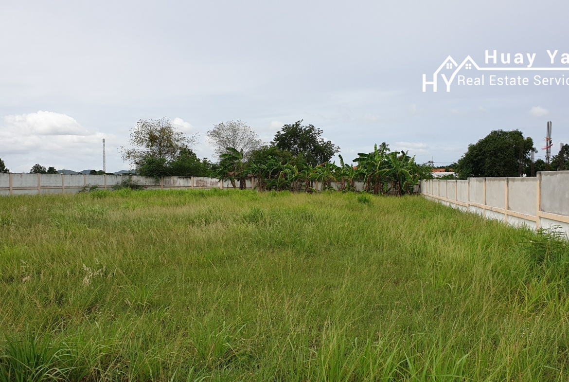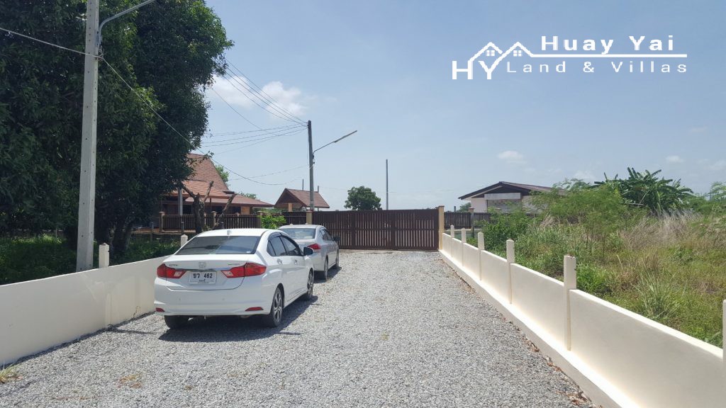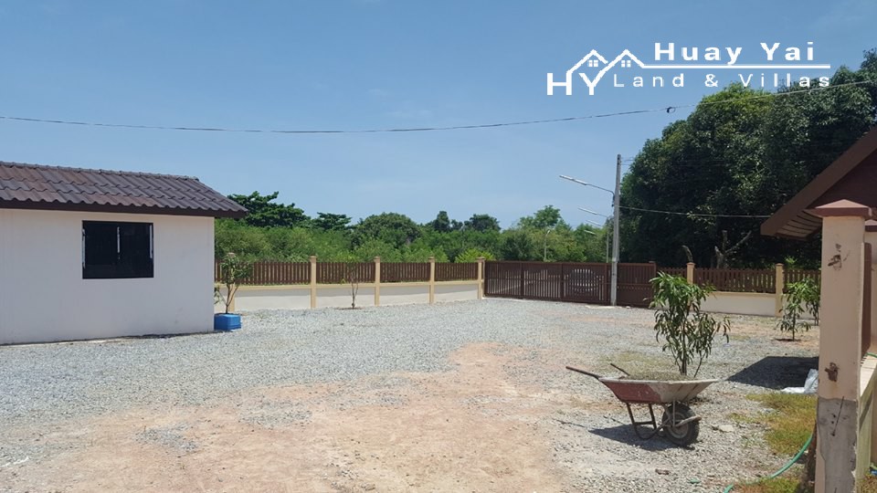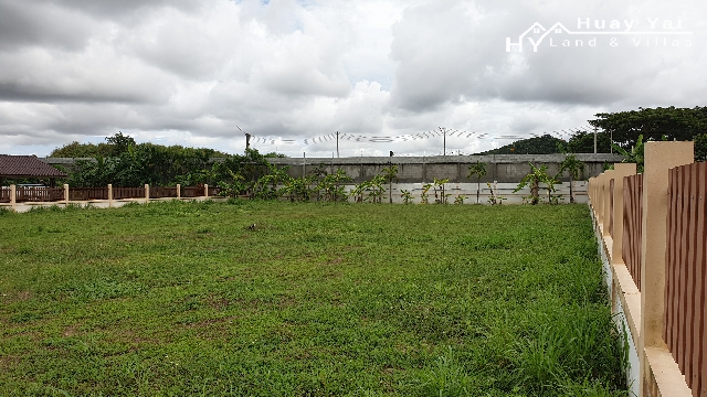 Last plot of 6 plots that were available. Land for sale in a small gated community of 6 properties on the edge of Huay Yai Village. Communal entrance with on site security. Walled plots ready for building. Quiet but accessible area. Gently sloping ensures not floodable