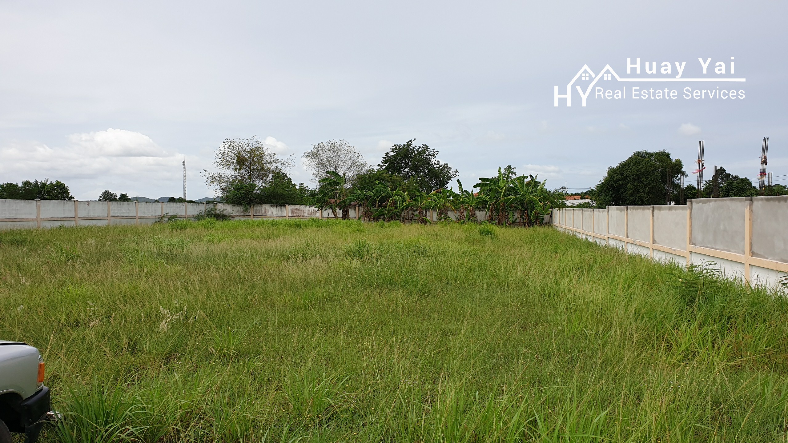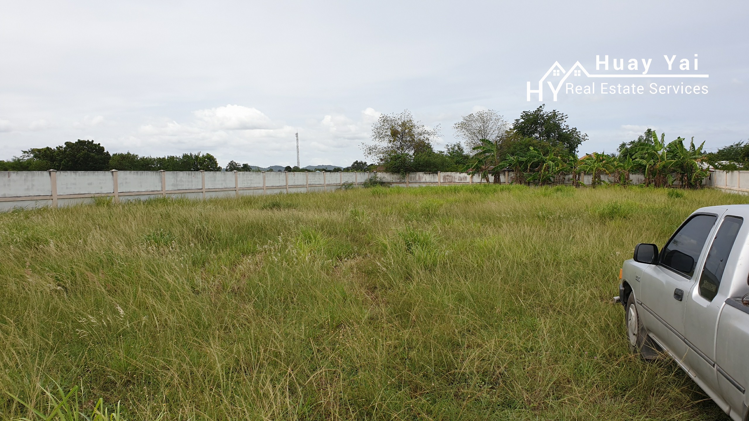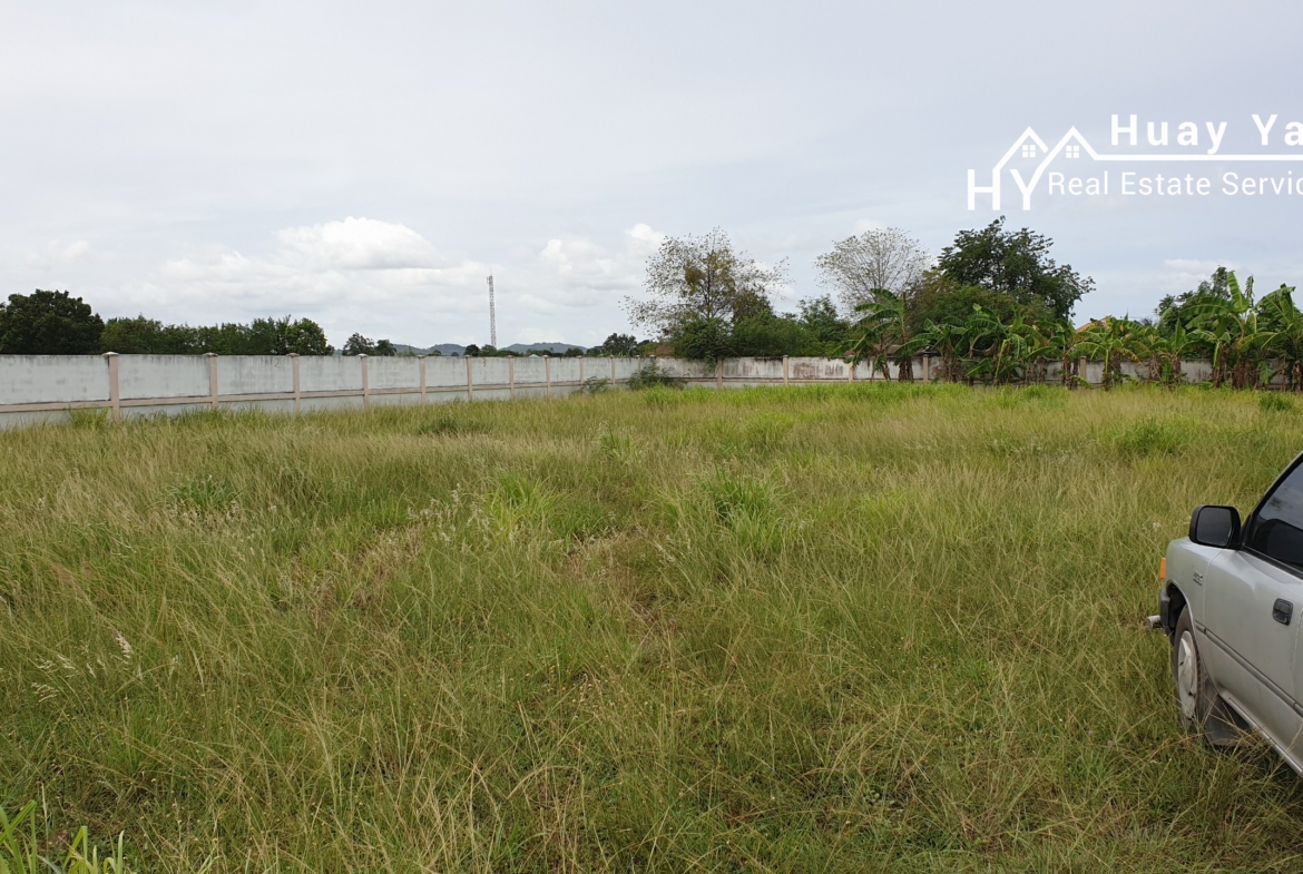 Last plot of 6 plots that were available. Land for sale in a small gated community of 6 properties on the edge of Huay Yai Village. Communal entrance with on site security. Walled plots ready for building. Quiet but accessible area. Gently sloping ensures not floodable